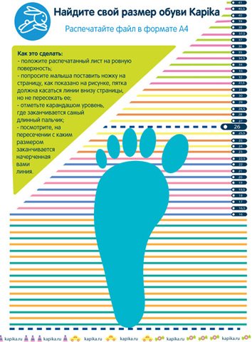 - регулярно проверяйте размер стопы ребенка; с 1 года до полутора лет измерения необходимо повторять каждые три месяца, с 2х лет – каждые четыре месяца, с 3х лет – один раз в пол года.