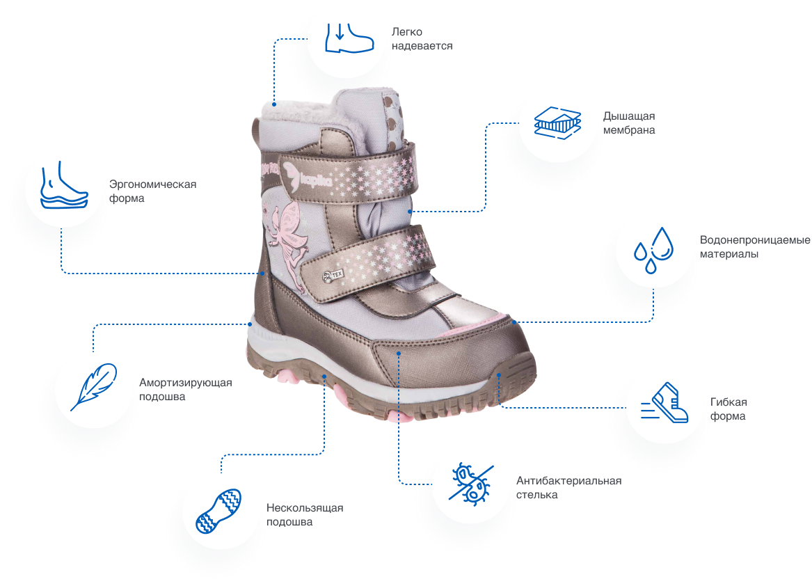 Осень и весна славятся непостоянной погодой. Утром может быть морозно, а днем солнце может припекать совсем по-летнему. Поэтому очень важно подобрать обувку ребенку так, чтобы ему было не холодно и не жарко. Мы знаем, как это тяжело, и создаем демисезонную обувь с заботой о детях и их родителях и с учетом капризов природы.