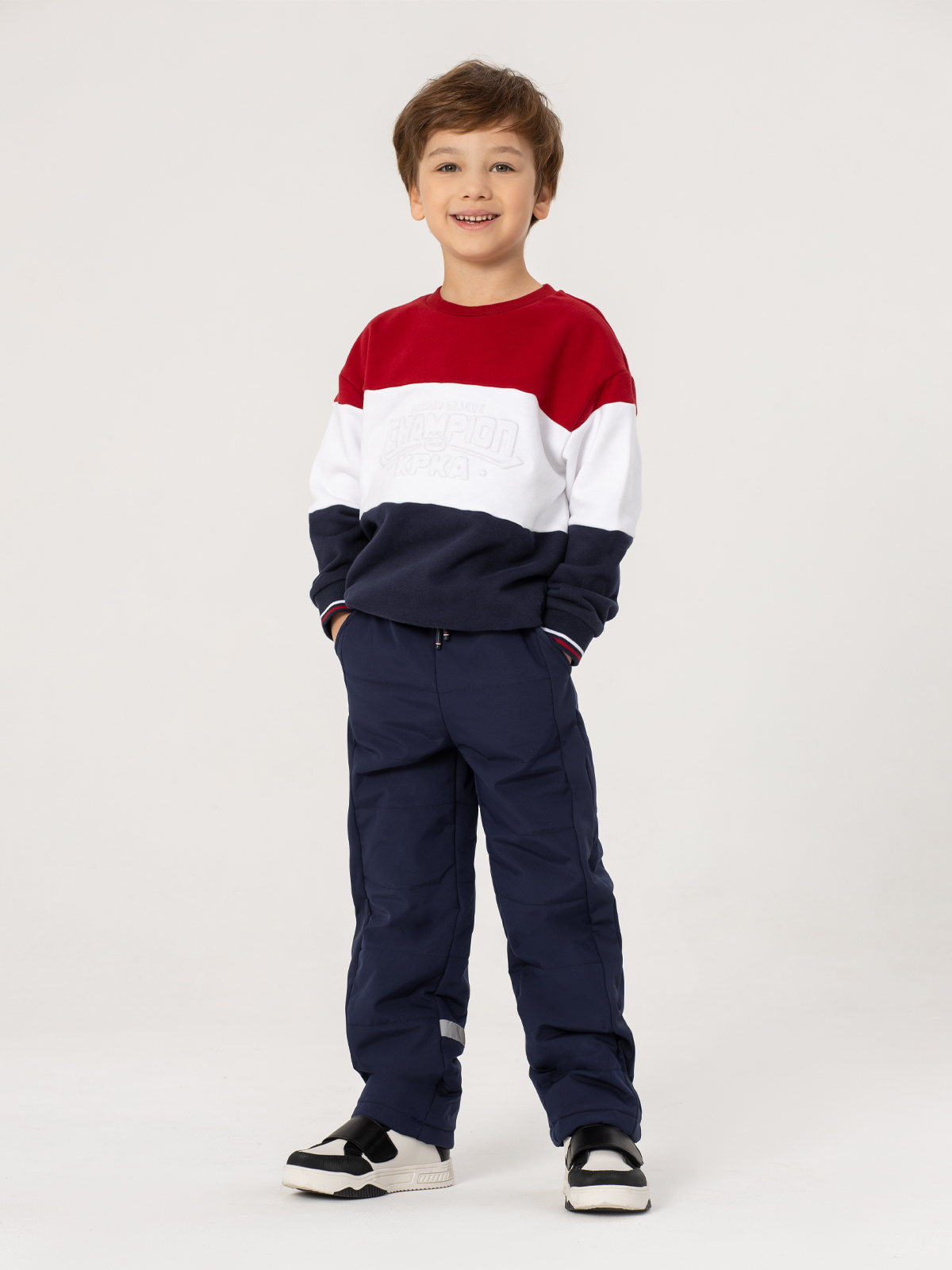 Утеплённые брюки для мальчиков — идеальное решение для зимних прогулок. Выполнены из материала с влагоотталкивающими свойствами и надёжной мембраной 5000 мм/5000 г/м², которая защищает от ветра и осадков. Утеплитель - синтепон 160г/м2, обеспечивающий комфортную защиту от холода. Практичный тёмно-синий цвет легко сочетается с любой верхней одеждой. Брюки оснащены светоотражающими элементами для безопасности в тёмное время.