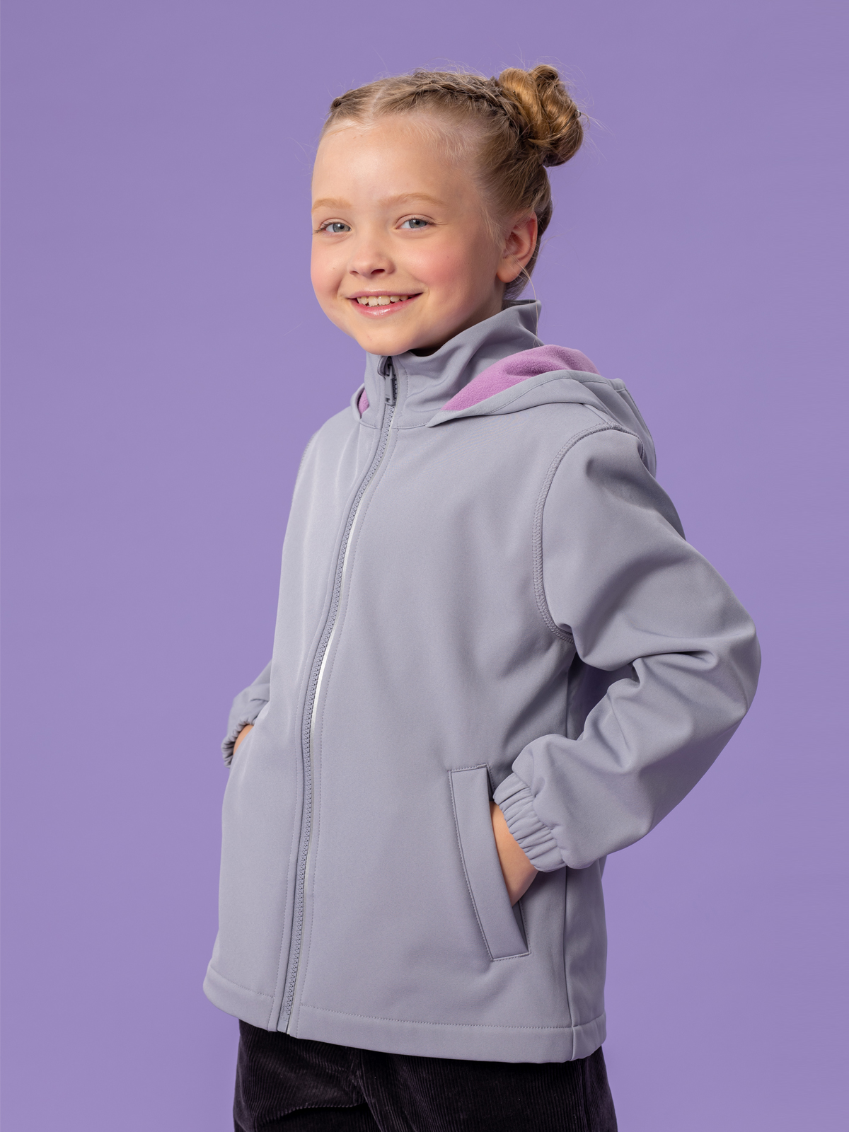 Лёгкая и практичная куртка из современного материала софтшелл для девочек. Стильный серый цвет дополнен ярким акцентом — контрастным розовым флисом внутри, который не только согревает, но и создаёт модный образ. Ткань с мембраной 5000 мм / 5000 г/м² надёжно защищает от влаги и ветра. Застёжка-молния защищена специальным гаражом от натирания подбородка. По всей длине молнии проходит светоотражающая тесьма для безопасности в тёмное время суток. Два удобных кармана помогут хранить необходимые мелочи. Резинки по низу рукавов обеспечивают комфортную посадку и защиту от ветра.