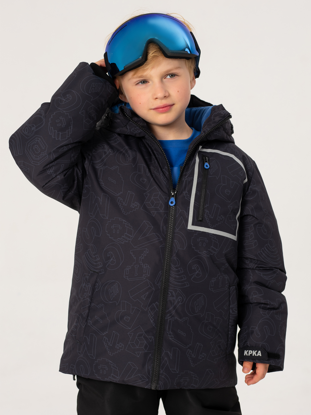 Зимняя куртка для мальчика из влагозащитной, грязеотталкивающей, не продуваемой мембранной ткани 5000мм/5000г/м2/24чс утеплителем из искусственного пуха 350г/м2 обеспечивает надежную защиту от мороза. Фольгированная подкладка omni heat отражает тепло тела ребенка и возвращает его обратно. Съемный капюшон имеет регулируемую кулису по краю. Высокий воротник, манжеты из риба, ветрозащитная планка на липучках, кулиса по низу изделия надежно защищают от ветра. Куртка имеет светоотражающие принты для безопасности ребенка в темное время суток. Оригинальный дизайн — принт на ткани и яркий контрастный капюшон создают неповторимый образ, который понравится вашему ребенку.